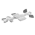 Hliníkový ochranný kryt podvozku z nabídky originálního príslušenství CFMOTO pro dlouhou verzi ctyrkolky CFMOTO Gladiator X625 modelového roku 2023 a novejší. Sada obsahuje kryty strední cásti podvozku a ramen vcetne instalacního materiálu.